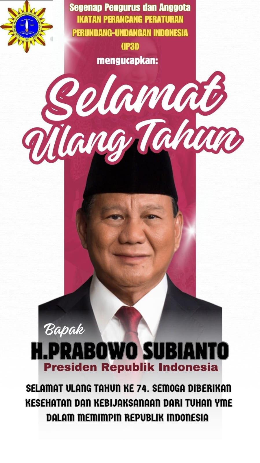 Selamat ulang tahun ke 74, 17 Oktober 2025 untuk Bapak Presiden Republik Indonesia, Bapak prabowo sehat, panjang umur, dan all the best Pak. #indonesiabangga #indonesiaemas2045