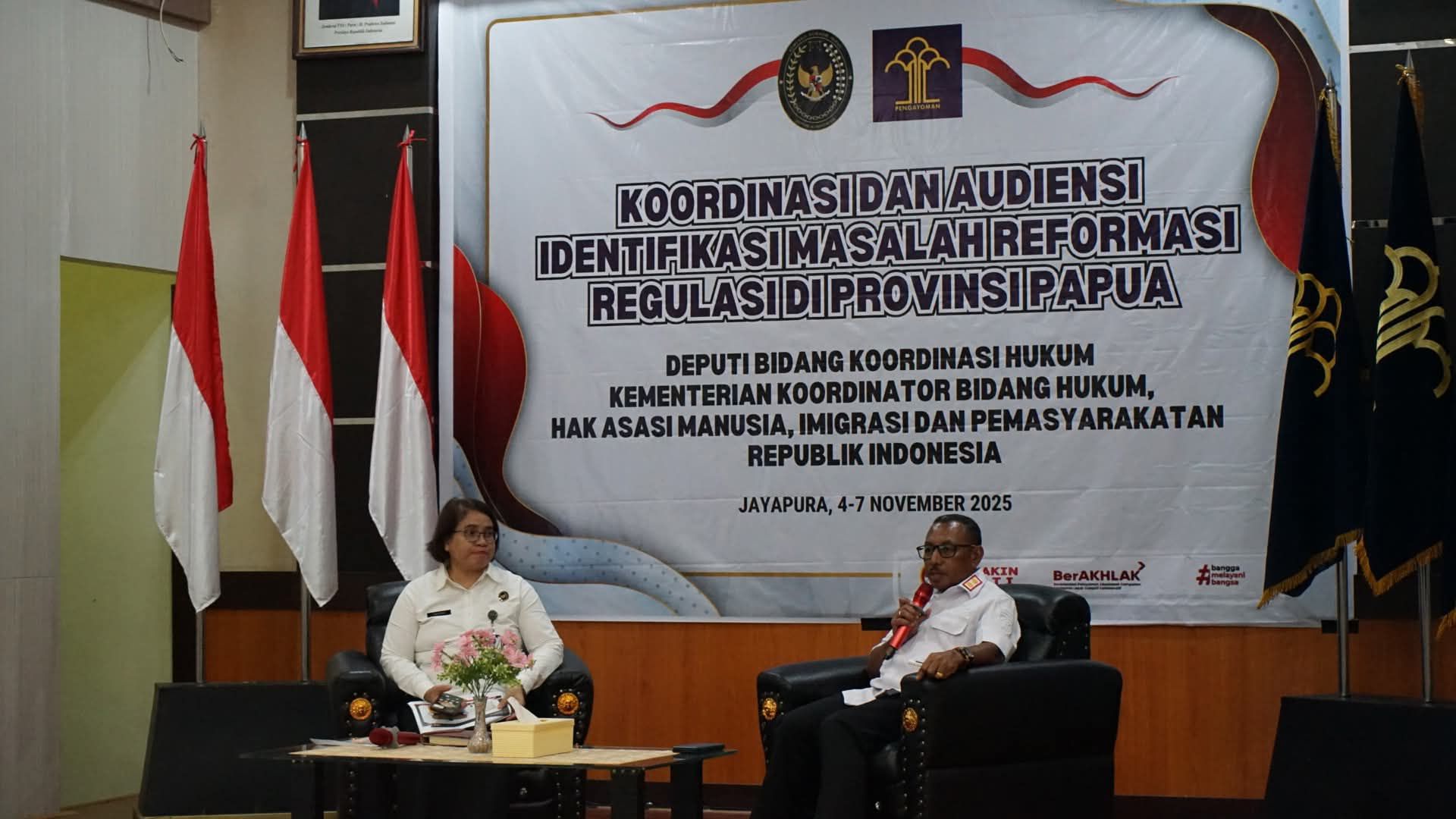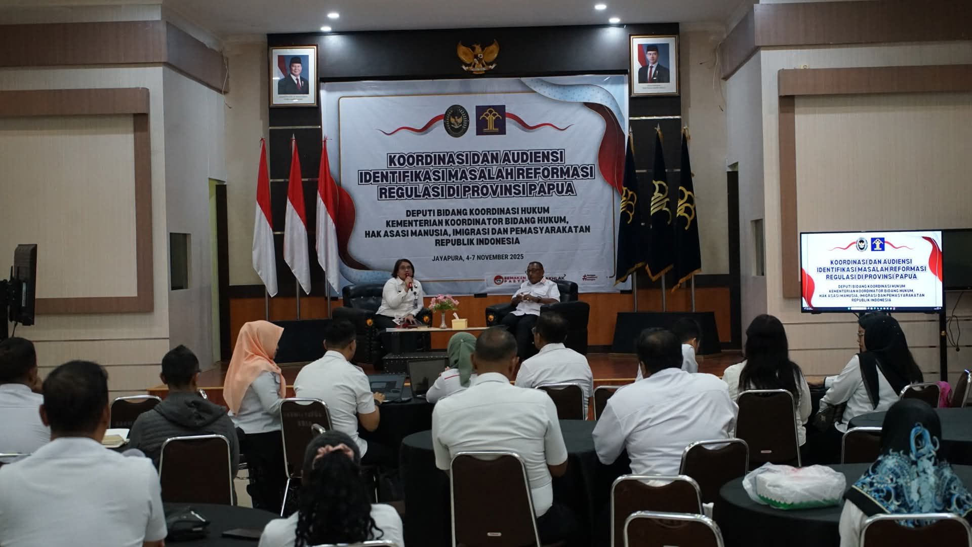 Kementerian Koordinator Bidang Hukum, HAM, Imigrasi, dan Pemasyarakatan (Kemenko Kumham Imipas) RI bersama Kantor Wilayah Kementerian Hukum (Kemenkum) Papua menggelar Koordinasi dan Audiensi Identifikasi Masalah Reformasi Regulasi di Provinsi Papua.