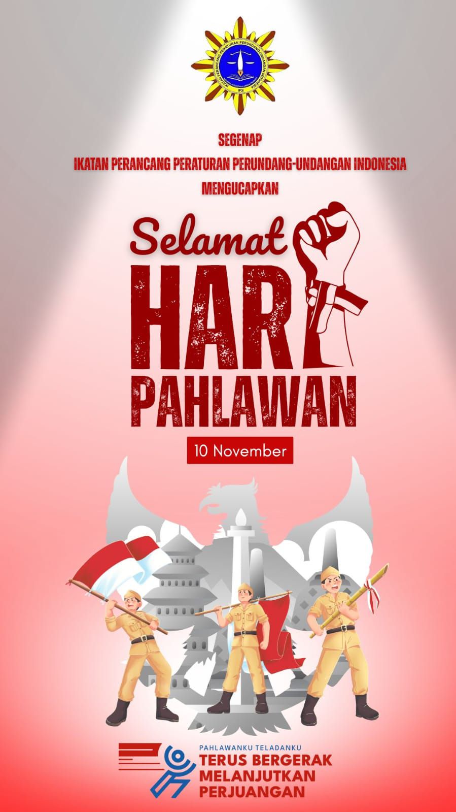 Segenap Perancang Peraturan Perundang undangan Indonesia dan seluruh pengurus memperingati perjuangan para Pahlawan. Kiranya semangat patriotisme terus tumbuh dalam insan profesi perancang Peraturan Perundang undangan Indonesia IP3I.